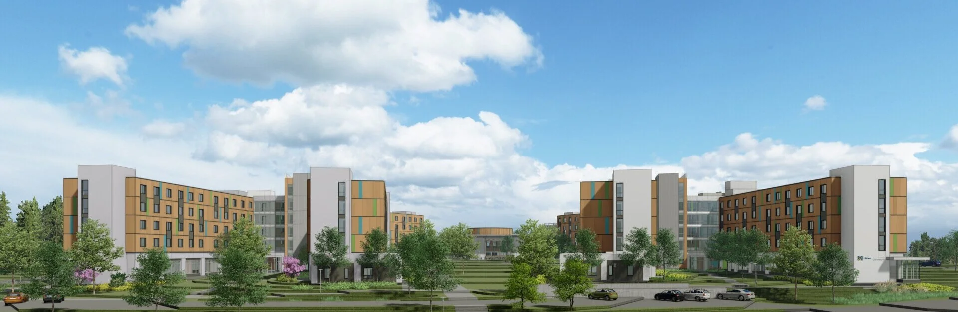 This P3 on-campus project offers replacement housing for first-year students and responds to student demand for modernized living-learning communities. This transformational community will foster student engagement with the goal of improving student success - both academically and emotionally. This community includes a robust program for student life and academic support spaces. An 800-seat two-story dining facility is co-located within the residential facility and anchors a portion of the academic quad.